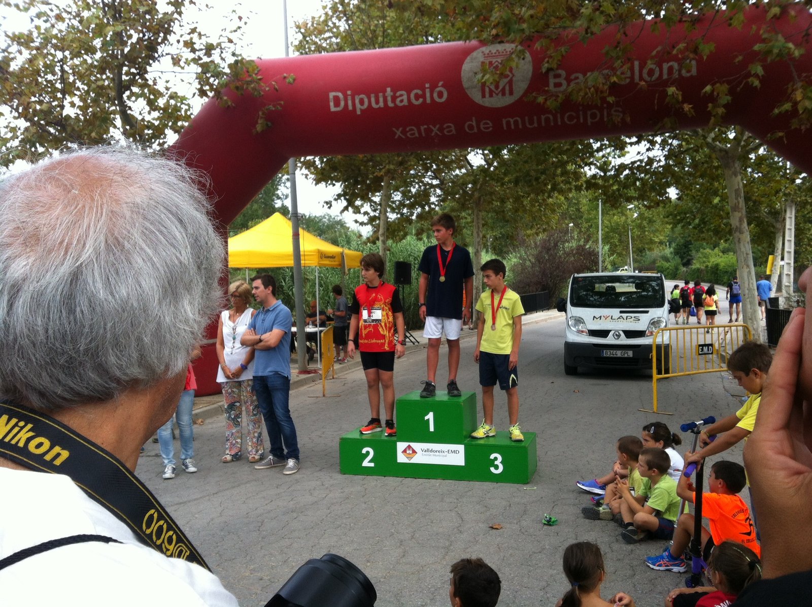 L’altre novetat es que no he anat sol aquest cop. He anat amb un bon grup de Fondistes Llobregat i fills (del Club Atlètic Cornellà). Hem quedat prèviament i hem compartit cotxe i m’han portat (gràcies, per cert!). En total érem 9 participants. Hem corregut a la categoria senior l’Antonio Romero, en Carles, Quim i Jordi Font, i la Sílvia Girones. En quant als nens, tots ells han fet podi en les seves respectives categories, com podreu veure en les fotografies. Nosaltres hem quedat bastant bé (hi havia massa nivell per mi), i la Sílvia ha estat a una posició de fer podi. Llàstima.